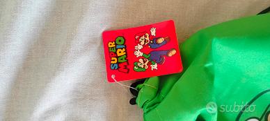 Vendo questo zainetto verde di Super Mario, raffigurante Luigi. È uno zainetto con coulisse, perfetto per la scuola o per il tempo libero.