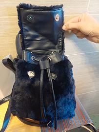 Zainetto SWROVSKI blu nuovo mai usato con scatola. Zainetto con bretelle e chiusura metallica clip. Esterno tessuto tipo pelliccia morbida.