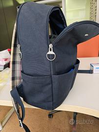 Bello zainetto in tela blu da 15 litri. comprato un mese fa ma piccolo per le mie esigenze. usato pochissimo. 2 tasche anteriori, 2 laterali, 2 interne.