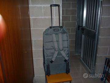 Vendo zaini nuovi mai usati ideali per indumenti di lavoro e per cantieri e trasferte, ma anche per il tempo libero, con vano inferiore per scarpe da lavoro antinfortunistiche, con 2 rotelle e bretelle a spalla, manico estraibile, 2 colore grigio 1 colore blu dimensioni Cm. 80 x 40 x 25, 25€.