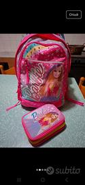 set zaino scuola elementare barbie originale con astuccio portamerenda e tovaglietta pari al nuovo