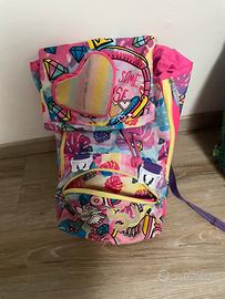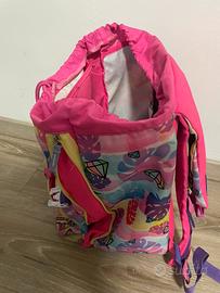 Dettagli glitterati e scritte “Just be yourself”Struttura rigida con chiusure a clip e zip