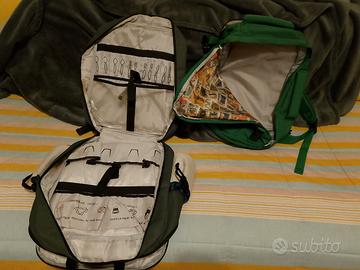 vendesi 2 zaini (1 touring+1 benetton) ,vedere foto,nuovi e mai usati . TOURING : 4 scomparti ,doppia maniglia di trasporto(orizzontale e verticale),mis. 30x40x12.BENETTON : 3 scomparti (di cui uno anche portavivande),2 vani porta borraccia/bottiglia ,mis. 30x 40x15.COSTO:singolarmente €40,00 cadauno. in coppia €60,00.