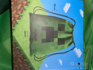 a sacco Minecraft creeper skin originale e marchiato Mojang, ideale per la scuola, gite fuori porta, palestra e attività all'aperto o semplice collezionismo per gli amanti del mondo cubico, lo zaino non è mai stato utilizzato ed è completo di cartellino, inoltre è possibile utilizzarlo in double face. Adatto a tutti grandi e piccini.🟩⬛️