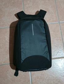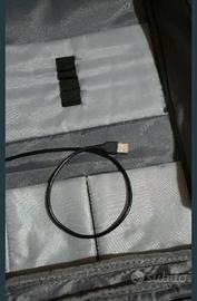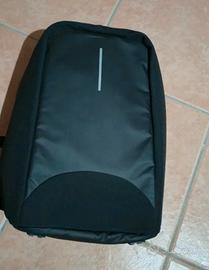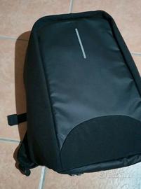 Sicurezza Antifurto: La cerniera principale è nascosta sul retro (contro la schiena) Porta USB Integrata: Dispone di un cavo interno (visibile in foto) per collegare un power bank e caricare lo smartphone Scomparto imbottito per laptop (fino a 15.6") e tablet, con diverse tasche per penne, cavi e accessori Tessuto idrorepellente e resistente ai tagli In ottime condizioni