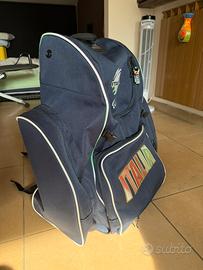 Praticamente nuovo, adatto per scarponi da ski o snowboard o per molto altro, molto capiente, comodi sostegni, introvabile zaino olimpico.