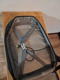 zaino dimensioni bagaglio a mano piccolo con due tasche: una porta vestiti e una porta pc.
