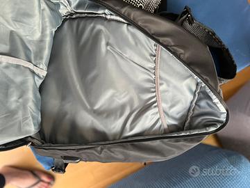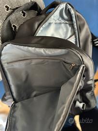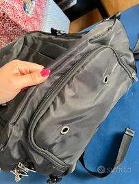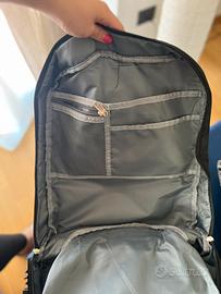 Vendo zaino nero come bagaglio a mano da portare in cabina. Possiede innumerevoli tasche, quella anteriore impermeabile, piu tasca porta scarpe. Condizioni ottime, usato un paio di volte