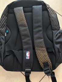 Zaino NBA completo di cartellino originale colore nero con dusegno NBA sul frontale . Lo zaino è imbottito con tasca grande per libri, una tasca media con cerniera ed un’atra piccola con cerniera. Lateralmente ci soni n. 2 tasche retinate. Lo zaino non è mai stato usato.
