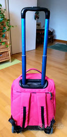 Trolley in tessuto colore lilla in ottime condizioni, manico e tutte le cerniere sono a posto, euro 38.