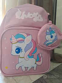 Nel negozio di GB zaino bimba unicorno con tasca interna e capiente a prova di tablet all' esterno un borsellino ciondolo