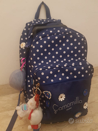 Zaino Camomilla × Seven , mai usato, nuovo, incluso convertitore in trolley non originale e portachiavi da ragazzina.Ottimo x tutti gli ordini di scuola.Super resistente!Ad un prezzo speciale da definire ,disponibile a vendere anche uno zaino grande Santoro.