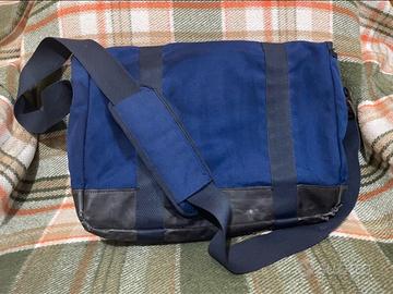 Zaino a tracolla come da foto, marca Napapijri colore blu scuro con inserti marroni e neri! Due scomparti interni di cui uno con possibilità di inserire un accessorio imbottito (compreso) per il trasporto del pc e uno con portapenne e tasche varie. Tasca frontale con zip e fondo impermeabile per essere poggiato anche a terra. Adatto per scuole superiori. Per altri dettagli scrivetemi