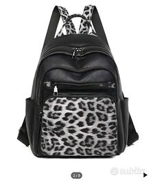 Vendo zaino carino in finta pelle, colore nero con stampa leopardo grigia, lo zaino è nuovo