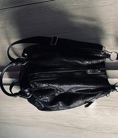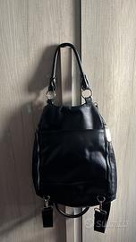 Zaino/borsa nera in ecopelle, dal design moderno e super versatile. Usato pochissimo, in condizioni eccellenti: materiale perfetto, nessun graffio, nessun segno di usura e zip che scorrono senza problemi. La texture elegante e i dettagli in metallo lo rendono un accessorio chic ma pratico per tutti i giorni.