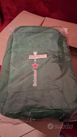 Zaino brandizzato Heineken ,nuovo mai utilizzato. Misure : lunghezza schienale 50 cm, larghezza 35 cm.