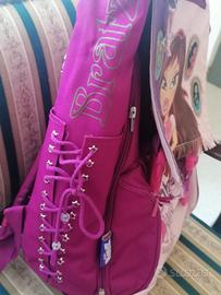 Vendo uno zaino Bratz, rosa e viola. È uno zaino vintage, leggermente usato, con qualche segno di usura visibile nelle immagini.