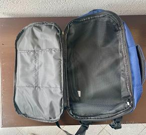 Nuovo, mai usato. In confezione originale. Zaino cabina. Ideale per i viaggi come bagaglio a mano. Misure 42x30x16 cm. 3 tasche esterne (1 frontale – 1 sul retro porta PC – 1 sul retro per oggetti di valore) + porta borraccia. Manico laterale e presa per valigia.