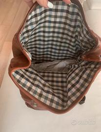 Pelle pieno fiore italiana, conciata con estratti vegetali e rifinita a mano alla pura anilina con fodera interna in cotone e poliestere