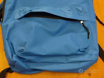 Vendesi zaino colore blu chiaro (tipo colore maglia della nazionale italiana di calcio) dotato di una tasca anteriore, chiusure a zip.
