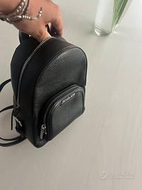 Vendo elegante zaino mini Michael Kors in vera pelle nera, modello convertibile, nuovo e mai utilizzato, completo di etichette originali e libretto informativo.