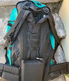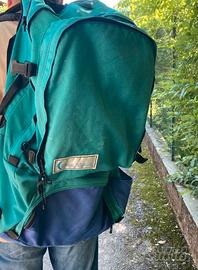 Zaino per escursioni in montagna o viaggi vacanza, con spallacci imbottiti, stecche in alluminio per miglior confort posturale, puo diventare una comoda borsa, tessuto impermeabile, usato in buone condizioni, comodo per grandi viaggi molto capiente, con tasche Vendo euro 35