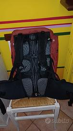 Zaino 40 litri con apertura frontale e antipioggia incorporato. Molto comodo x passeggiate.