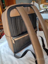 Zaino business Zara in PU, colore Fango, retro tasca con cerniera e passaggio trolley, cinghie regolabili, interno scomparto per PC, tasca cellulare e documenti, tasca con cerniera e gancio per chiavi, anteriore tasca per tablet o documenti, misure 42×32×15