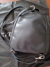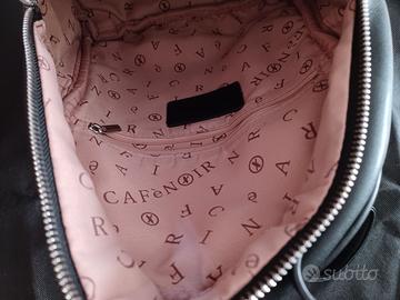 Zaino firmato CafèNoir usato pochissimo con custodia. Nero e argento. In una cugitura laterale è presente un piccolo difetto ma nemmeno si vede