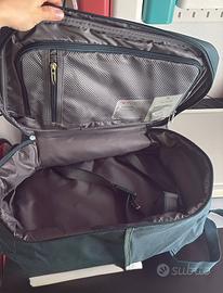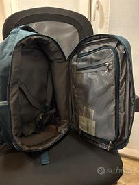 Zaino da viaggio ideale come bagaglio a mano GRATUITO per tutte le compagnie aeree. Molto ben organizzato, compatto ma capiente. Vendo per doppione, usato una sola volta, praticamente nuovo!! Presente anche etichetta originale