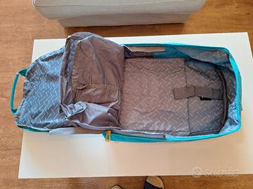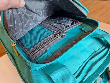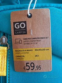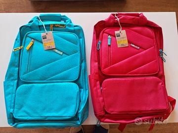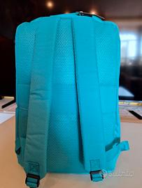 Zaino MAI utilizzato! Misure: 45x30x20 cm. Ideale anche come bagaglio a mano gratuito varie compagnie aeree. Vano porta pc. Svariate tasche interne ed esterne. Alla base pratica tasca porta scarpe. Chiusura zip con doppio cursore e anelli di sicurezza per lucchetto. Sistema d'aggancio al trolley. Realizzato in resistente poliestere. Colore verde acqua. Possibilità di avere il gemello colore rosso. Singolo 40€, entrambi 70€.