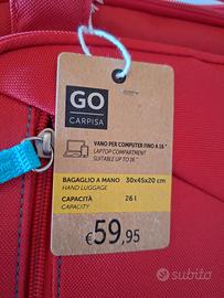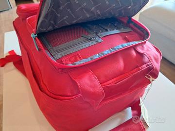 Zaino MAI utilizzato! Misure 45x30x20 cm. Ideale anche come bagaglio a mano gratuito varie compagnie aeree. Vano porta pc. Svariate tasche interne ed esterne. Alla base pratica tasca porta scarpe. Chiusura zip con doppio cursore e anelli di sicurezza per lucchetto. Sistema d'aggancio al trolley. Realizzato in resistente poliestere. Colore rosso. Possibilità di avere il gemello colore verde acqua. Singolo 40€, entrambi 70€.