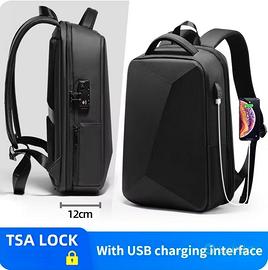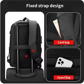 Zaino unisex, borsa da viaggio e da lavoro multifunzionale dotato di sistema di chiusura antifurto con zip. Colore: nero. Misure: Altezza 45 cm; Larghezza 32 cm; Profondità 12-22 ~. Il materiale dello zaino lo rende impermeabile. È dotato di due tasche/scomparti dedicati per il Laptop e per il Tablet con in più l'uscita per ricarica USB (il powerbank non è incluso). Lo zaino è estensibile in maniera tale da essere poco ingombrante quando non è a pieno carico. Le capacità dello zaino vanno quindi dai 20 ai 35 litri diventando estremamente versatile per l'uso di tutti i giorni o per i viaggi. Lo zaino è dotato di varie tasche interne ed esterne (una, facilmente accessibile, anche dedicata alle carte di credito o biglietti) nonché di una tasca antifurto posta sul retro. Ha inoltre due tasche laterali con zip dove inserire agevolmente un ombrello retrattile e una borraccia termica (o semplice bottiglia d'acqua). Lo zaino è ben imbottito e in alcune zone è rigido per proteggere il contenuto. L'imbottitura sul retro limita la sudorazione favorendo la circolazione dell'aria. Ha la possibilità di essere bloccato sul manico di una seconda valigia per agevolare il trasporto durante i viaggi. Lo vendo per doppio regalo. Il prodotto non è mai stato utilizzato. A questo zaino non manca proprio niente. Se cercate uno zaino robusto, leggero, resistente, comodo ed ergonomico questo zaino fa al caso vostro. Il prodotto è consegnabile a mano nelle città di Caserta e provincia, Portici, San Giorgio a Cremano e zone limitrofe