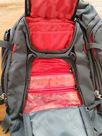 Zaino della quiksilver, nuovo mai usato. Composto dalla tasca principale, taschino sopra esterno, 2 tasche laterali e 2 tasche davanti progettate per porta oggetti. Misure: h 50 x Larghezza 32 x profondità 20 + tasche esterne.