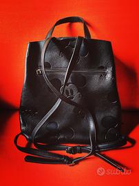 Zainetto da donna in similpelle nera, con incisioni di Topolino effetto 3D, compartimento esterno posteriore con zip. Capiente e resistente.