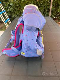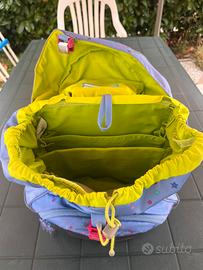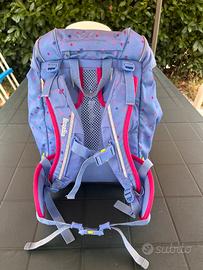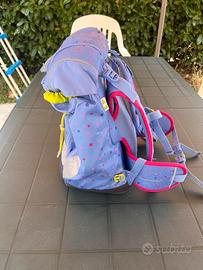 Vendo zaino ergonomico Ergobag per scuola primaria, azzurro e fucsia. Tessuto riciclato. Usato, tenuto bene, con qualche segno di usura e un piccolo foro, ma ancora ben utilizzabile. Struttura ergonomica perfetta. In aggiunta serie di 5 kletties con velcro.