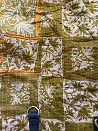 Il cotone colorato è tessuto riciclato da vecchi sari. Motivo originalissimo e colori vivaci ma raffinati.
