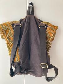 Bellissimo e resistentissimo zaino in tela di cotone, spessa sul fondo e sugli spallacci, del marchio equosolidale Sari Bari.
