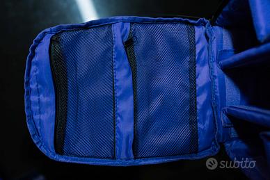 Esterno nero resistente, interno viola con mesh e strap/velcro per dividere come vuoi