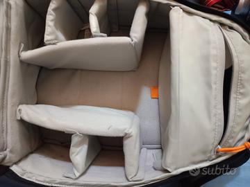 Vendo zaino fotografico Lowepro Tahoe BP150 in colorazione nera. È uno degli zaini più leggeri e apprezzati per chi cerca protezione senza l'ingombro dei modelli ingombranti. Ideale per corredi Mirrorless o Reflex compatte. Caratteristiche principali: Ultra-Leggero: Pesa solo 800 grammi, perfetto per lunghe camminate in città o come secondo zaino da viaggio. Vano UltraFlex™: Interno imbottito e completamente personalizzabile con divisori a velcro per proteggere corpo macchina, lenti e flash. Spazio per Tablet: Tasca dedicata protetta (sistema CradleFit) per tablet o piccoli dispositivi. Tasche Extra: Ampia tasca frontale per accessori (batterie, schede, cavi) e tasche laterali in rete per borraccia o piccoli treppiedi. Design Discreto: Non sembra uno zaino fotografico tecnico, ideale per muoversi in sicurezza in contesti urbani. Lo zaino è in buone condizioni estetiche e funzionali. Le cerniere scorrono perfettamente e non presenta strappi. È stato utilizzato con cura e conservato in ambiente pulito.