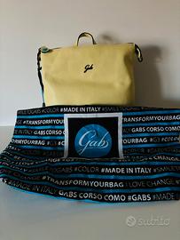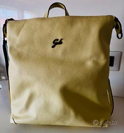Zaino GABS LOLITA originale taglia M color giallo canarino con chiusura a zip, fodera in cotone e tasche interne a fessura e con zip. Il modello presenta un manico fisso, due spallacci regolabili e una tasca posteriore con zip. Sul fondo, piedini in metallo che permettono di appoggiare lo zaino a terra senza rovinarlo. Insieme allo Zaino sacca originale per riporlo. Zaino nuovo mai utilizzato.