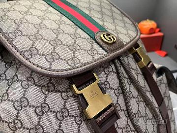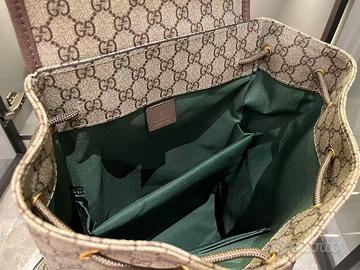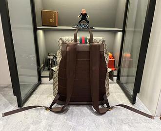 Questo zaino è realizzato in tessuto spalmato con motivo monogramma GG, meticolosamente impreziosito dal logo a doppia G e da dettagli in fettuccia.