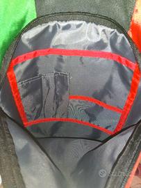Comparto principale con cerniera doppia e tasca applicata frontalmente, anch’essa con chiusura a cerniera