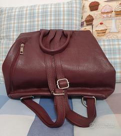 Capiente zaino da donna in pelle con finitura martellata. Design moderno e accattivante. Con maniglia, cinghie regolabili, chiusura a girello, due tasche interne e una tasca esterna con zip sul retro.