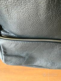 Bellissimo zaino in vera pelle nera da donna. lo zaino si presenta veramente bene. la cerniera anteriore è da sistemare.