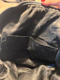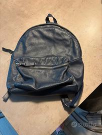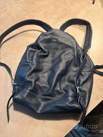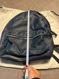 Zaino in morbida pelle blu scuro marca Pollini . Completo di sacca . Misure in foto