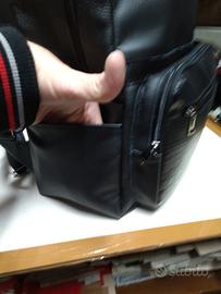 in vera pelle foderato con tasche interne e esterne e tracolle regolabili