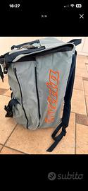 Zaino INVICTA VINTAGE IN BUONO STATO.Scienale imbottito,due scomparti interni chiusi con corde, cerniere laterali x allungare e stringere,due Tasche davanti.Difetto: Nylon chiusura scomparto dietro un po' rovinato.Visibile ultima foto.