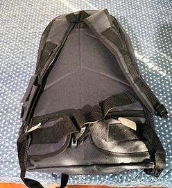 Zaino sportivo color grigio/sabbia in materiale antipioggia misura 40x25x20 completo di cinghia vita, fasce esterne per accessori, 2 tasche a rete laterali, tasca con foro x auricolare ed una ulteriore tasca frontale .Nuovo, mai usato .Zaino molto robusto ma leggero .concepito per trakking e uso sportivo