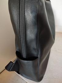 Zaino pelle sintetica nero Moleskine, rinforzato nel fondo, chiusura frontale con zip a due vie.